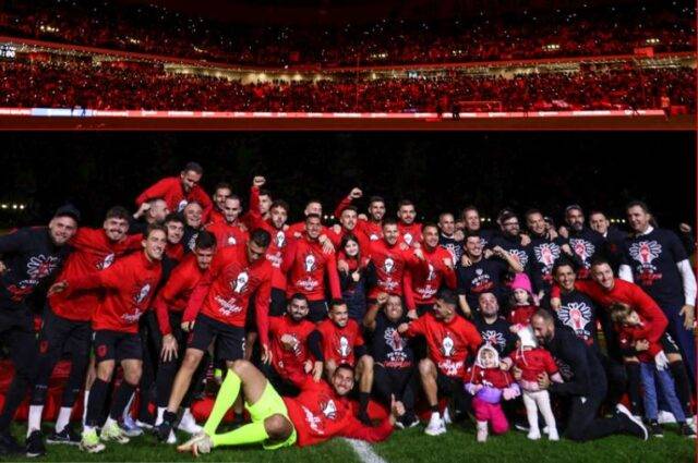 Festa nuk mungoi në stadiumin “Air Albania”, me lojtarët dhe stafin që u bënë të gjithë së bashku pas takimit në fushën e lojës.