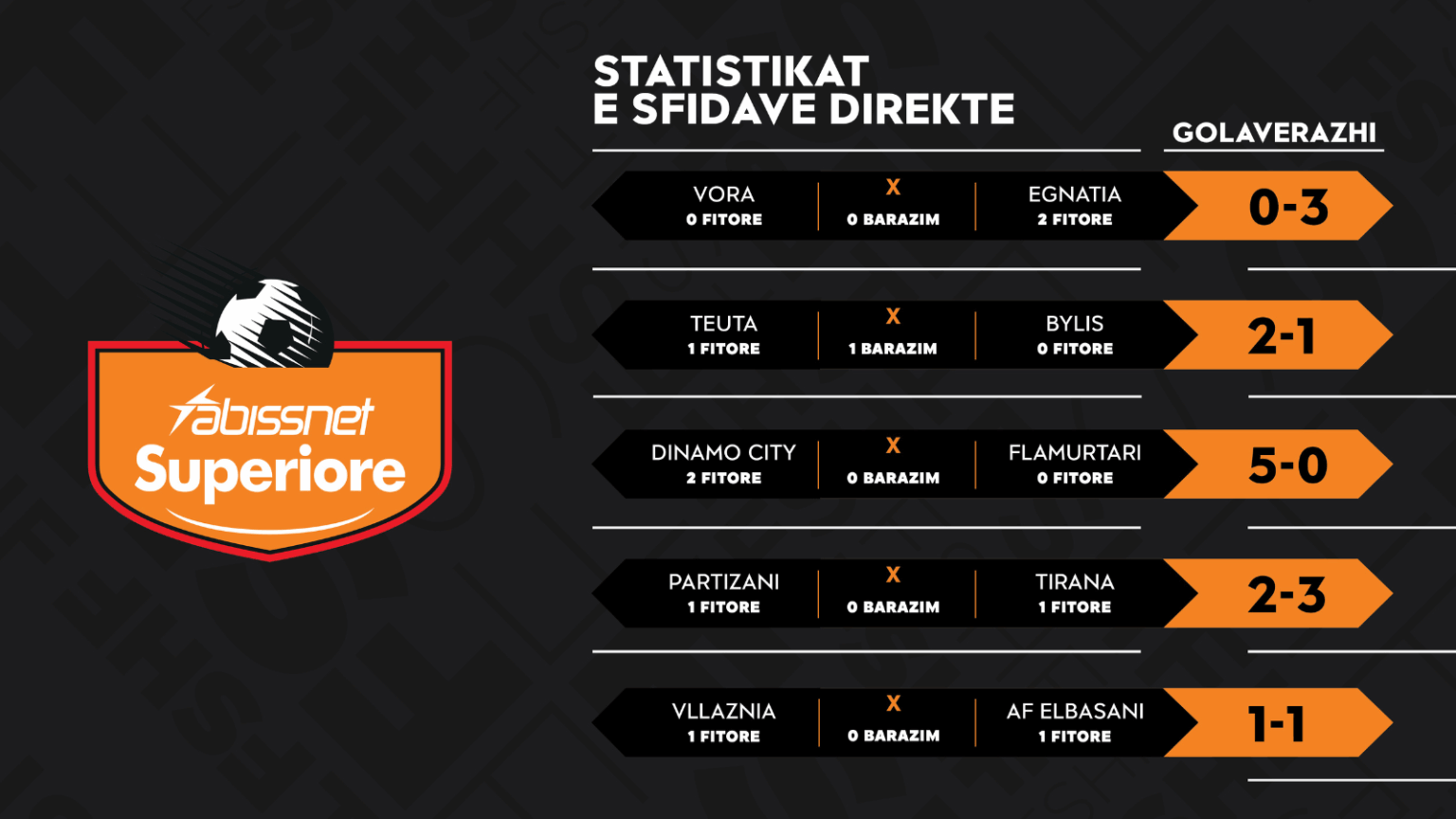 “Abissnet Superiore” vijon këtë fundjavë me ndeshjet e javës së 24-t, ku skuadrat do të përballen për herë të tretë këtë sezon me njëra-tjetrën. Rezultatet e dy fazave të para ofrojnë një pasqyrë të qartë të bilanceve direkte mes kundërshtarëve të kësaj jave.