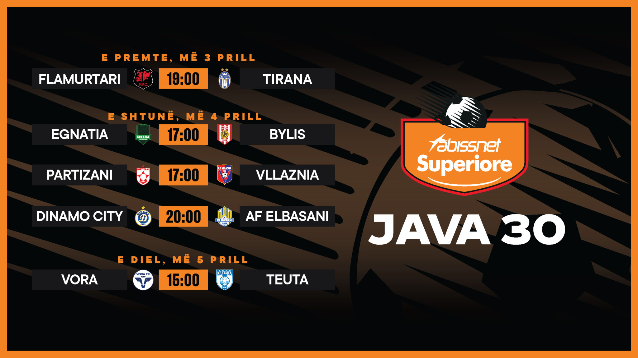 Kampionati “Abissnet Superiore” rikthehet të premten pas pauzës së imponuar nga ekipet Kombëtare. Kjo javë do të nisë menjëherë me një përballje të rëndësishme për mbijetesë. Flamurtari dhe Tirana do të përballen në stadiumin “Flamurtari”, në orën 19:00.