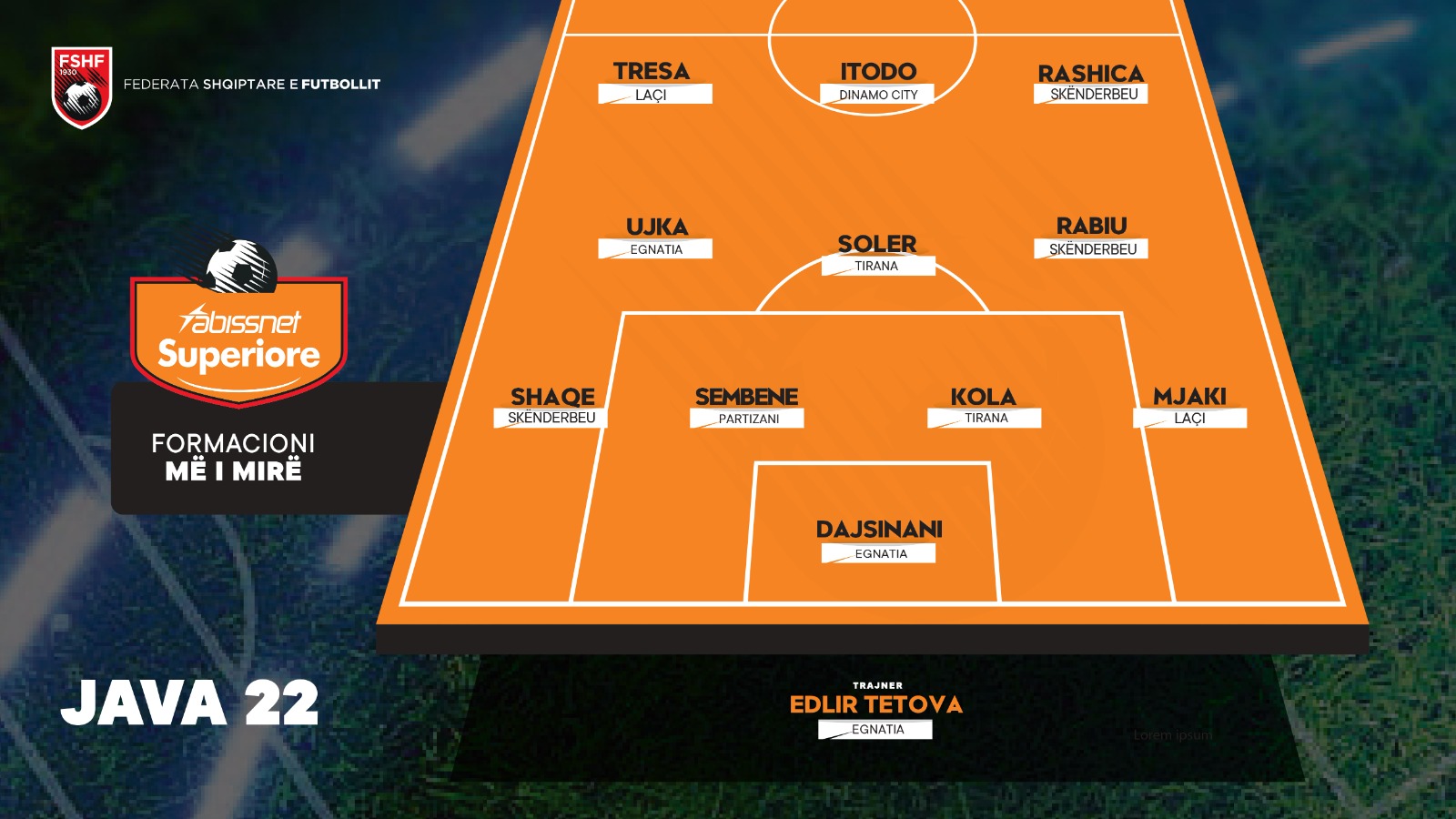 “Abissnet Superiore”/ Përzgjidhet formacioni dhe trajneri më i mirë i javës së 22-të