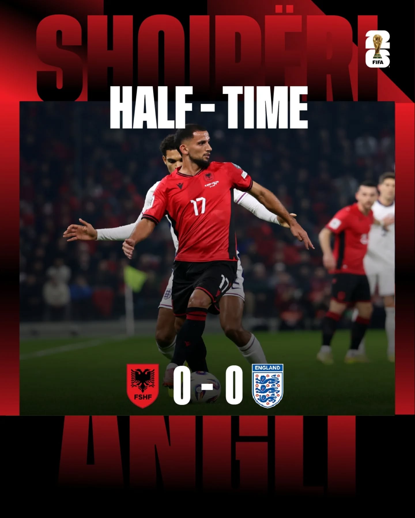Kombëtarja shqiptare e futbollit e ka mbyllur Grupin K kualifikues të Kupës së Botës 2026 në vendin e dytë me 14 pikë, pas katër fitoreve, dy barazimeve dhe dy humbjeve (të dyja me Anglinë). Kuqezinjtë tanimë e kanë siguruar fazën play-off dhe më 20 nëntor do mësojnë rivalin për ndeshjen që do luhet më 26 mars 2026. Finalet e Botërorit për kuqezinjtë kalojnë nga play-off, ndërsa Anglia si e para e grupit e ka siguruar vendin në eventin që do zhvillohet verën që vjen në Amerikën e Veriut.