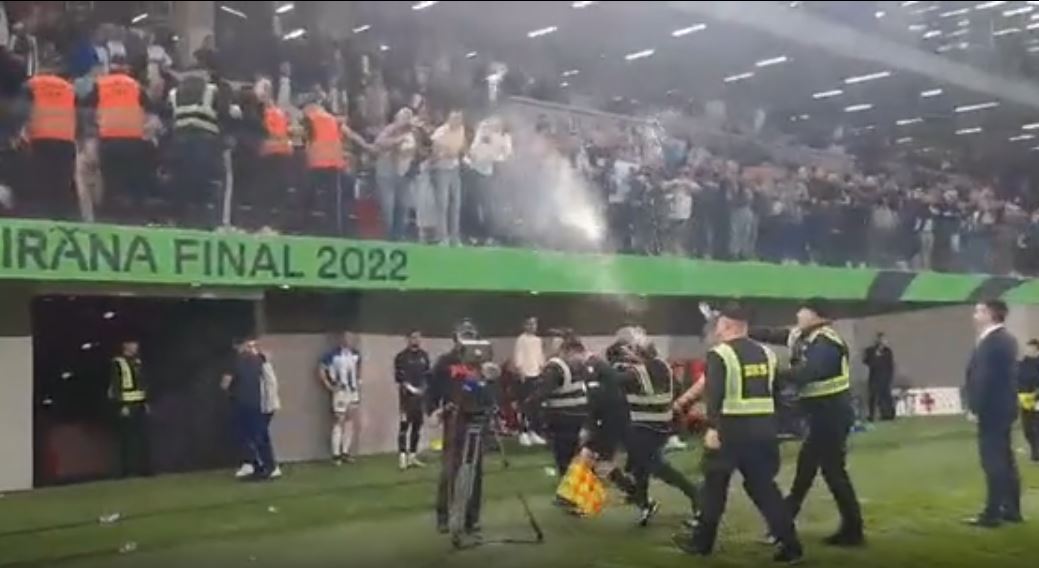 Arbitri Hamitaj goditet me gota birre pas përfundimit të derbit (VIDEO)