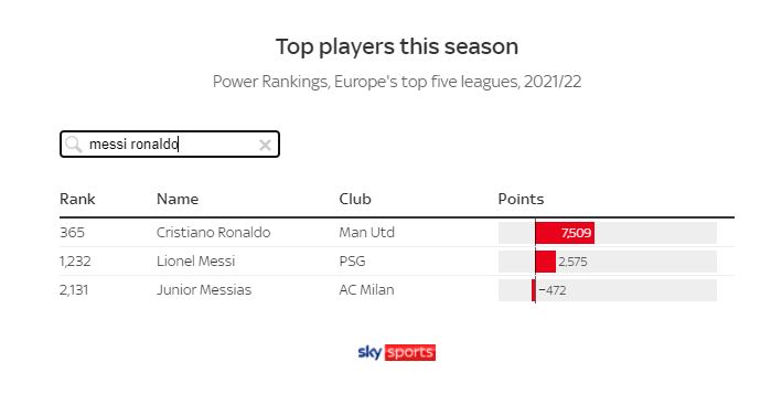 Bie në sy renditja e Ronaldos dhe Messit. Portugezi mban vendin e 365-të, ndërsa Messi renditët në vendin e 1232.