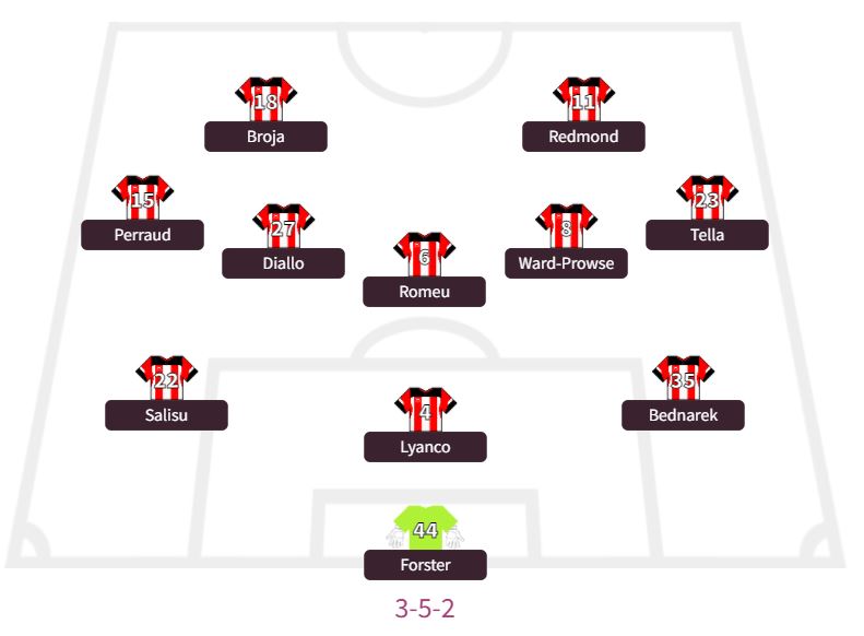 Armando Broja do të ketë shansin e artë pas pak minutash për të lënë gjurmë, teksa skuadra e tij Southampton, do të sfidojë Manchester City-in. Sulmuesi i Kombëtares sonë do e nisë duelin që nga minuta e parë së bashku me Redmond në majën e sulmit.