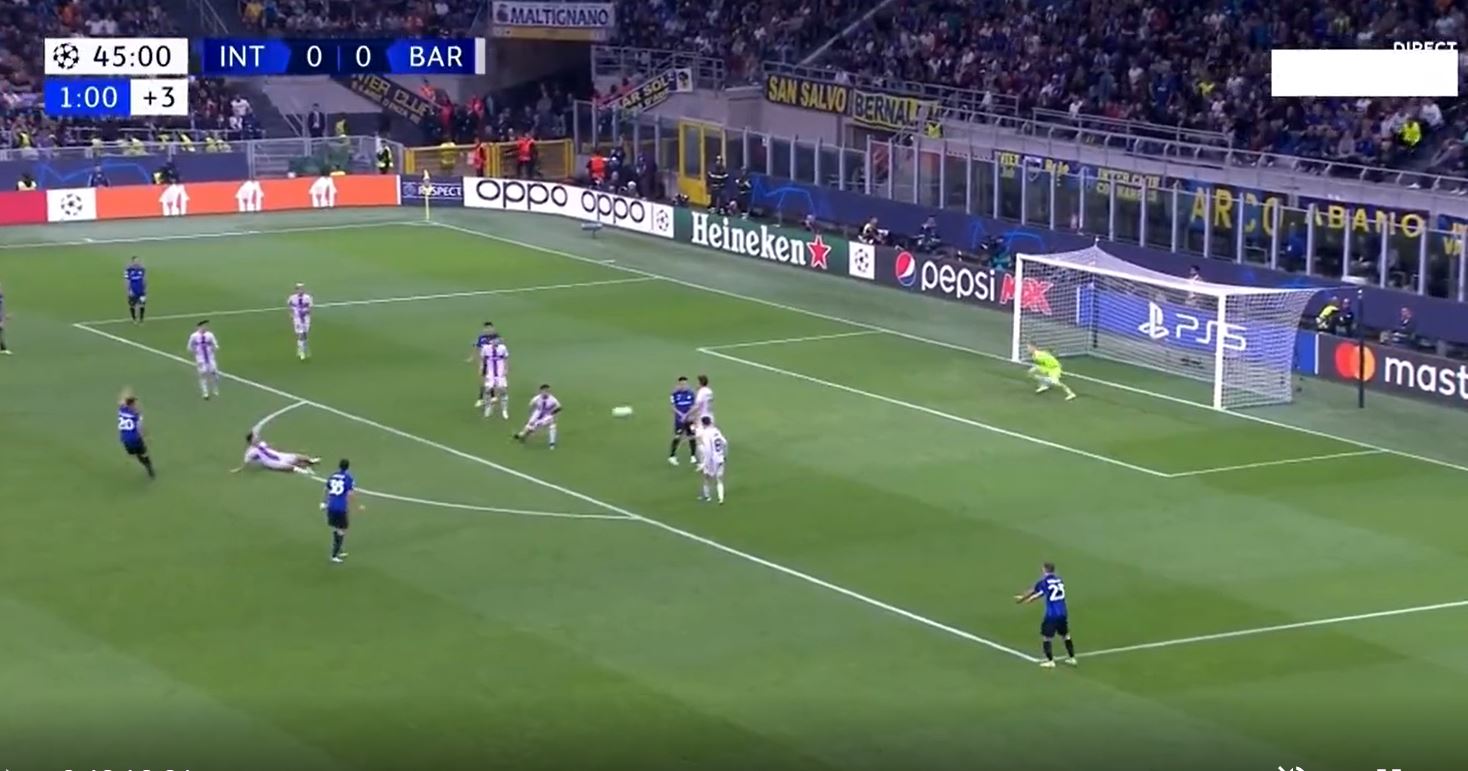 Interi i mbyll me gol 45 minutat e pr ndaj Barcelonës. Skuadra zikaltër ka kaluar në avantazh, 1-0, me një super gol të shënuar nga Hakan Calhanoglu nga distanca. Katalanasit kanë dominuar në lojë, por zikaltrit ishin ata që gjetën golin.