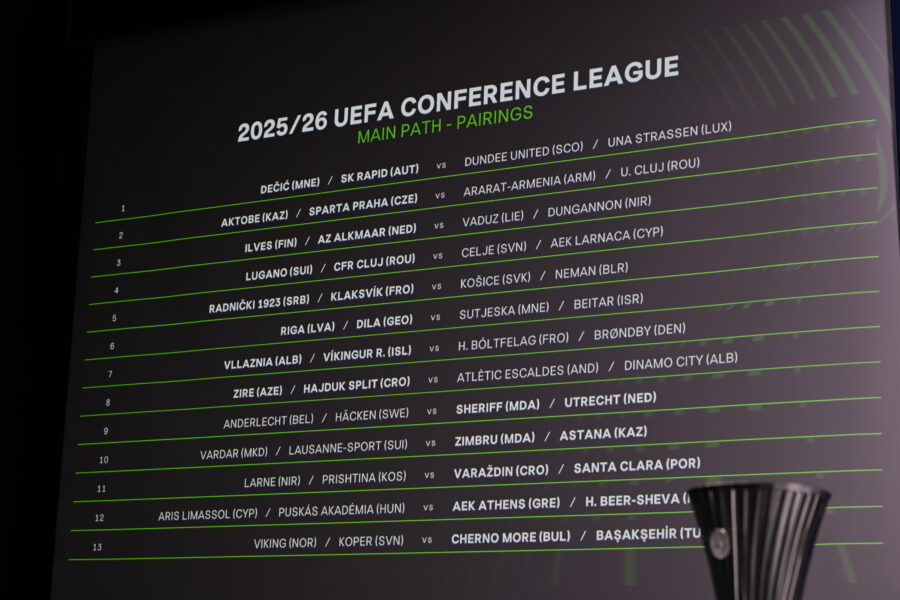 Është hedhur sot në Nion të Zvicrës shorti për turin e tretë kualifikues të Conference League, ku Egnatia, Vllaznia dhe Dinamo City janë njohur me rivalët e mundshëm në rast kalimi të turit të dytë.