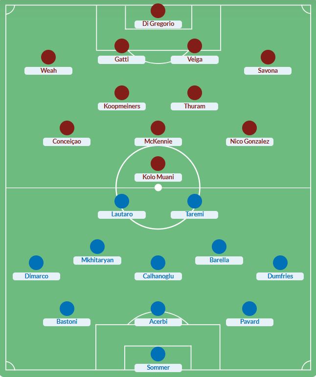 Kur mbeten dhe pak minuta nga fillimi i super duelit të dy trajnerët kanë zbuluar dhe formacionet zyrtare. Juventus do të luajë me formacionin 4-2-3-1. Koopmeiners dhe Thuram do të jenë dyshja e mesfushës, ndërkohë që para tyre do të jenë Conceicao, McKennie dhe Nico Gonzalez. Në sulm konfirmohet Kolo Muani.