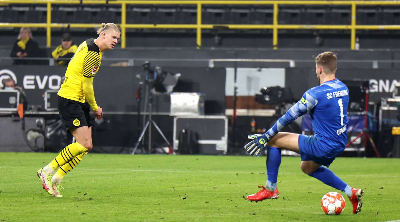 Pa u mbyllur pjesa e parë ishte radha e Haaland, i cili shënoi golin e tretë ndaj Freiburg. Freiburg ngushtoi diferencën me anë të Demirovic, megjithatë nuk ishte i mjaftueshëm për skuadrën e Streich. Për të vulosur gjithcka mendoi Haaland, i cili shënoi dhe golin e dytë personal në këtë takim dhe të katërtin për Dortmund.