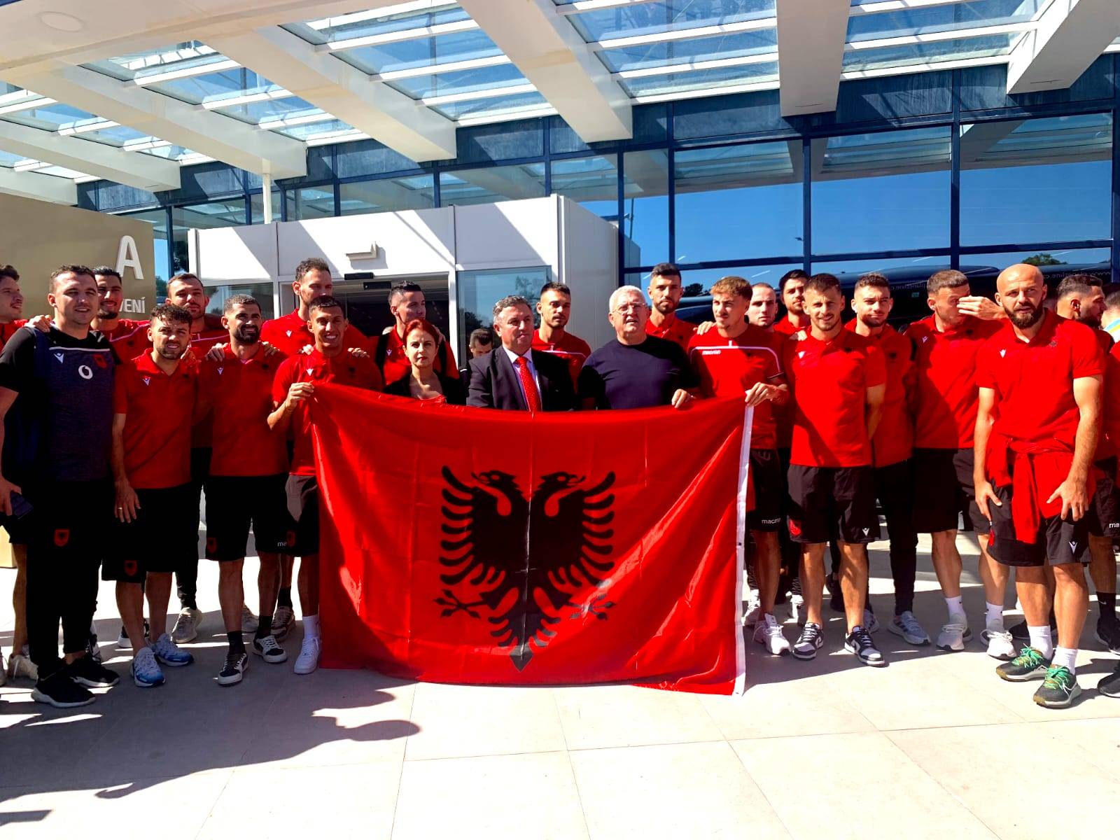Në aeroport delegacioni kuqezi u prit edhe nga Ambasadori i Shqipërisë në Republikën Çeke, Sh.T.Z. Ilirian Kuka, i cili u takua me ekipin e stafin teknik dhe u uroi suksese në këtë ndeshje të rëndësishme për objektivat e kuqezinjve në kualiifikueset e Europianit 2024.