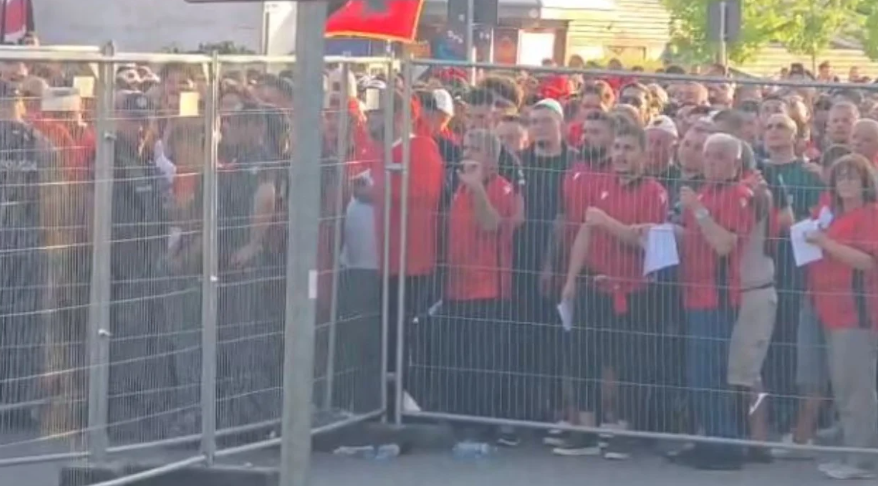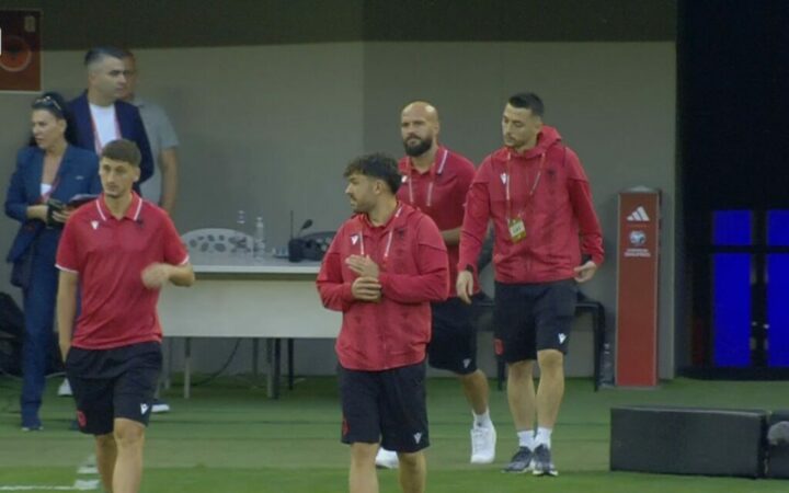 Çunat e ekipit kuqezi kanë prekur fushën e “Air Albania”, teksa janë pritur me brohorima nga tifozët që janë futur në stadium, i cili sonte do të jetë kuqezi. Po ashtu në sfond dëgjohet edhe kënga ”Mora Fjalë”, një këngë e kthyer në himn tashmë të kombëtares.