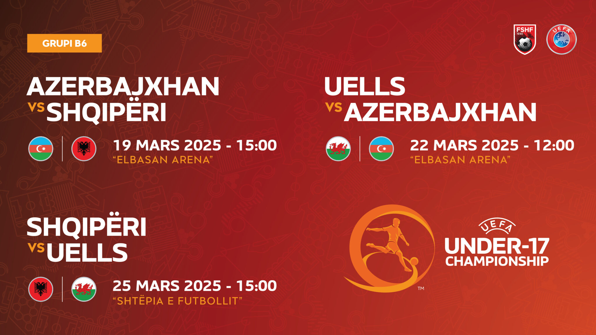 Federata e Futbollit do të organizojë në muajin mars turneun e dytë europian për vitin 2025, duke mirëpritur ndeshjet e raundit të dytë të grupit B6, të vlefshme për Kampionatin Europian U-17 “Shqipëri 2025”. Në këtë grup bëjnë pjesë Shqipëria, Azerbajxhani dhe Uellsi, me ndeshjet që do të zhvillohen në Shqipëri më 19, 22 dhe 25 mars.