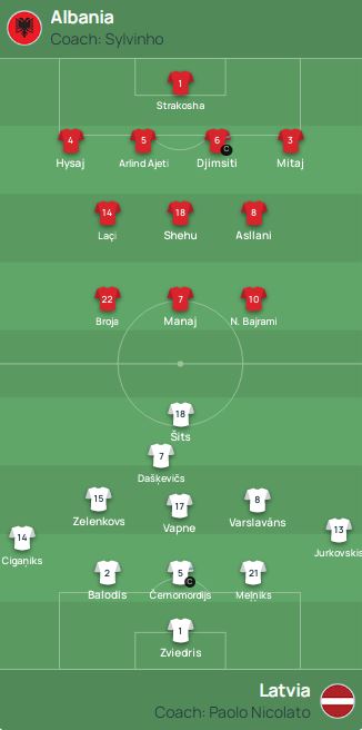 Formacionet/ Sylvinho luan me Brojën dhe Manajn në sulm, Letonia në fushë me pesë mbrojtës