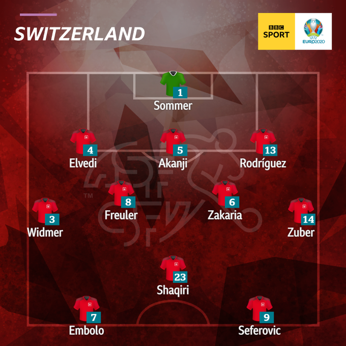 Pas pak minutash do të luhet çerekfinalja e parë e “Euro 2020” mes Zvicrës dhe Spanjës. Petkovic në mungesë të kapitenit Granit Xhaka i beson Zakaria-s në mesfushë. Pjesa tjetër e skuadrës nuk ka pësuar asnjë ndryshim me Freuler, që do të luajë në mesfushë. Shaqiri do të jetë në mbështetje të dyshes sulmuese Embolo dhe Seferovic.