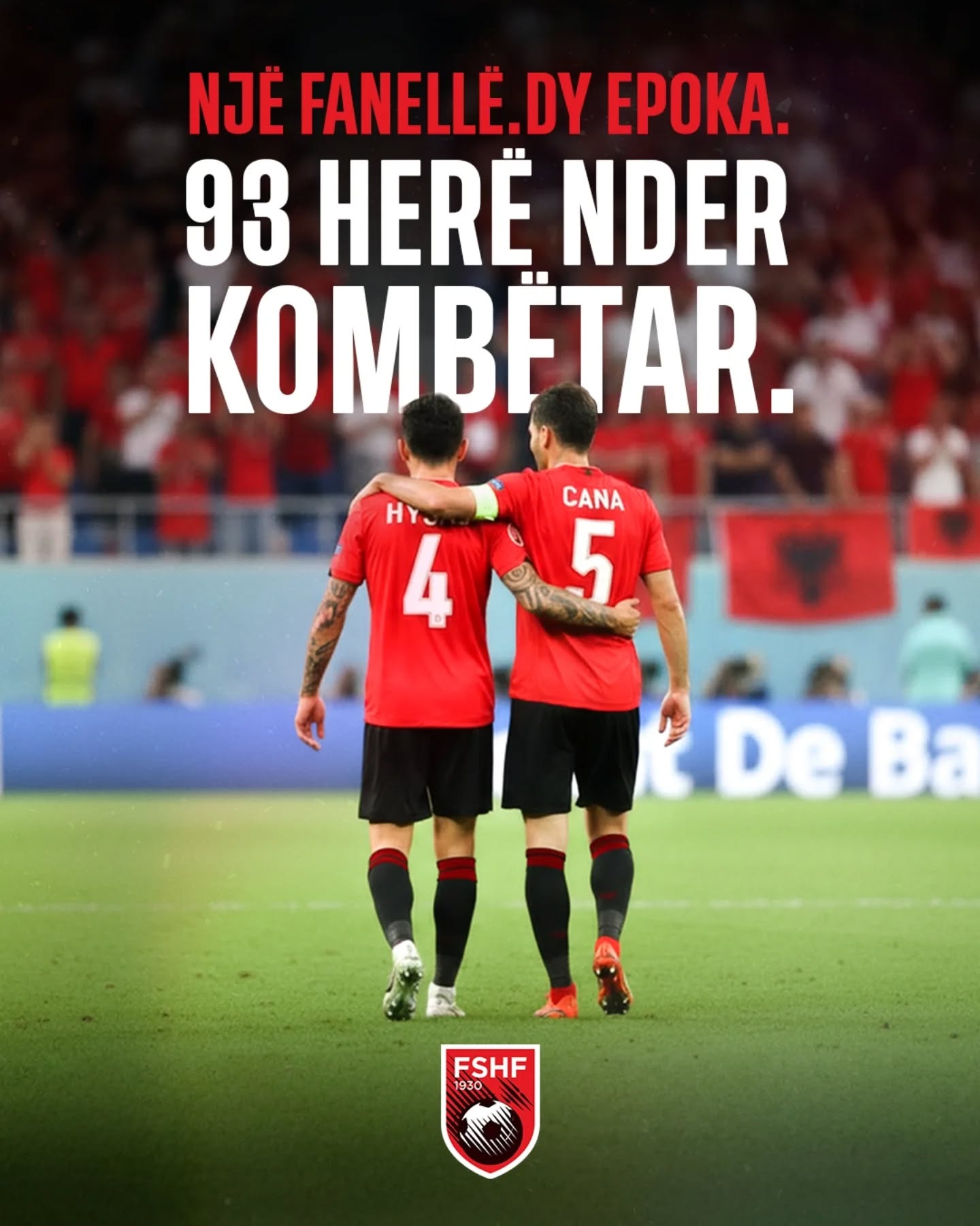 93 ndeshje ka luajtur Elseid Hysaj me Kombëtaren, duke barazuar ish-kapitenin legjendar Lorik Cana. Në përballjen kundër Serbisë, Hysaj ia del të barazojë Canën me ndeshje si kuqezi. Një foto me shumë emocion është publikuar edhe nga Federata Shqiptare e Futbollit. ”Elseid Hysaj, rekordmen. Mbrojtësi i djathtë dhe Lorik Cana ndajnë rekordin për numrin më të lartë të ndeshjeve me Kombëtaren”,-shkruan FSHF.