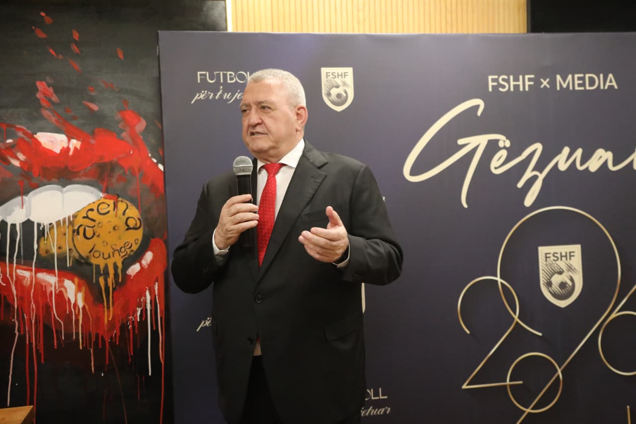 “Në emrin tim dhe të Federatës së Futbollit dua t’ju falënderoj që keni pranuar ftesën për të qenë bashkë këtu për të kaluar disa momente festive në këtë fundviti dhe në prag të vitit të ardhshëm. Kuptohet që një takim i tillë me njerëz kaq shumë të rëndësishëm për botën e futbollit, me përfaqësuesit e mediave, detyrimisht të bën që të reflektosh për atë çfarë kemi kaluar gjatë këtij viti të gjithë bashkë dhe për atë se çfarë ju keni kontribuar në zhvillimin e futbollit shqiptar.
