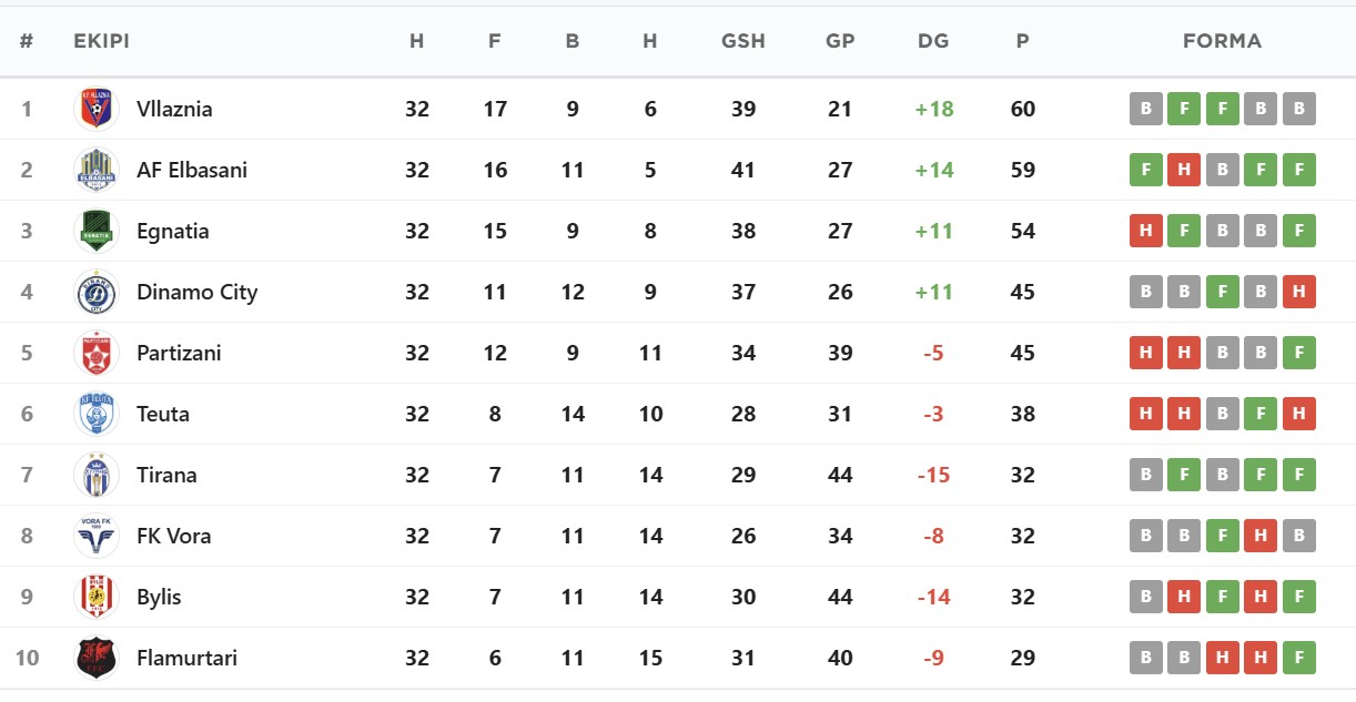 Ndërkohë, Flamurtari triumfoi 2-0 në Rrogozhinë përballë Egnatias, duke marrë një fitore me shumë vlerë, edhe pse vijon të mbetet në vendin e fundit me 29 pikë, tre më pak se Tirana, Bylis dhe Vora.