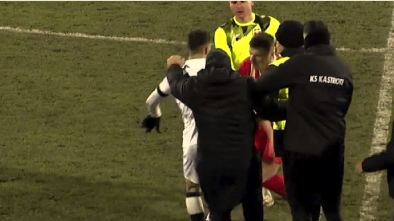 Goditi me shqelm lojtarin e Skënderbeut, pezullohet për 12 ndeshje trajneri i Kastriotit
