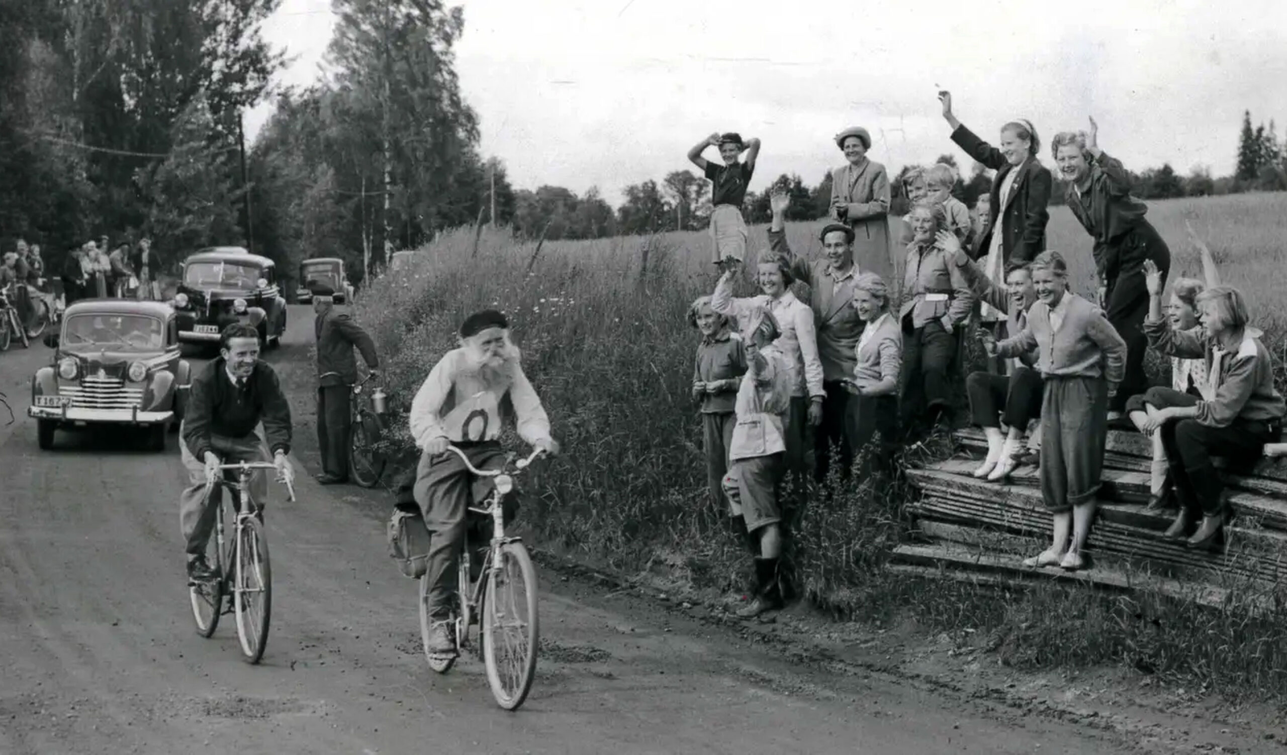 Kjo fotografi e rrallë, e përshkruan më shumë se çdo kronikë. Një burrë me mjekër të gjatë të thinjur, me veshje modeste, shtyn biçikletën e tij pranë një barriere rruge. Nuk është thjesht një çiklist. Është një simbol i këtij sporti. Një pohim i heshtur, por i thellë, se njeriu nuk matet me vitet që mban mbi supe, por me ëndrrat që refuzon t’i braktisë.