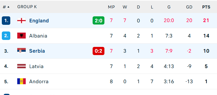 Në minutat që mbetën, kuqezinjtë administruan rezultatin dhe siguruan një fitore të merituar, ndërsa lajmi i mirë erdhi edhe nga ndeshja tjetër e grupit: Anglia mposhti Serbinë 2-0 , duke e konfirmuar Shqipërinë në fazën Play Off të Kupës së Botës.