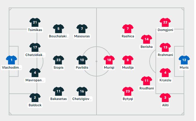Për këtë sfidë janë bërë publike edhe formacionet zyrtare me të cilat dy skuadrat do të zbresin në fushën e lojës. Muriqi do të jetë në majën e sulmit, i mbështetur nga Rashica, Bytyqi dhe Muslija.