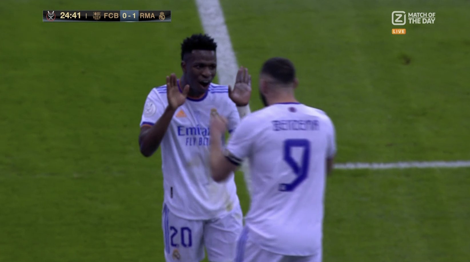 Reali Madridit e ka nisur në mënyrën më të mirë duelin ndaj Barcelonës, duke zhbllokuar gjysmëfinalen e Superkupës së Spanjës. Në minutën e 25-të, pas një kundërsulmi të shpejt, Vinicius Junior merr një pasim nga Benzema dhe me një qetësi vrastare e dërgon në fundin e rrjetës së ter Stegen.
