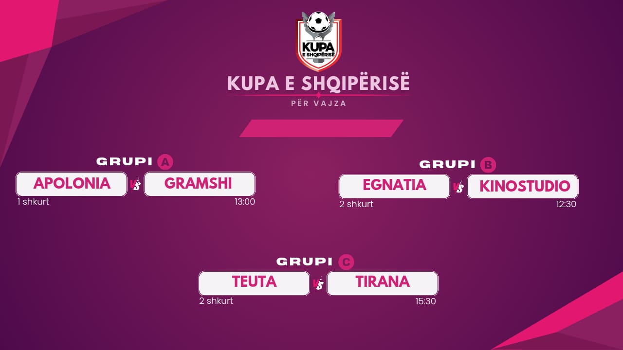 Në grupin B, Kinostudio do të përballet me skuadrën e Egnatias. Ndeshja do të luhet të dielën në ora 12:30.