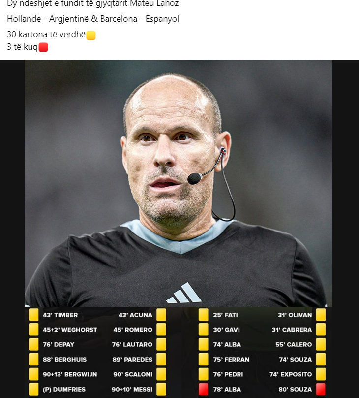 Ky është gjyqtar, 30 kartona të verdhë dhe 3 të kuq në dy ndeshje!