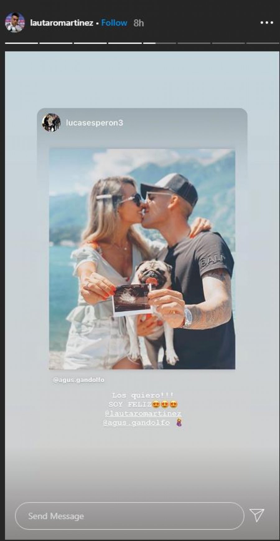 Në foto ai shfaqet së bashku me partneren e tij Agustina Gandolfo dhe me një eko në dorë duke treguar se ato do të bëhen prindër për herë të parë.