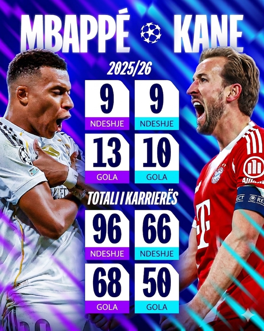 Ditën e nesërme do të luhet super dueli i parë në Champions League mes Real Madrid dhe Bayern. Një ndeshje që ka si protagonist dy super yje, si Mbappe dhe Harry Kane. Por kush është më në formë këtë edicion?