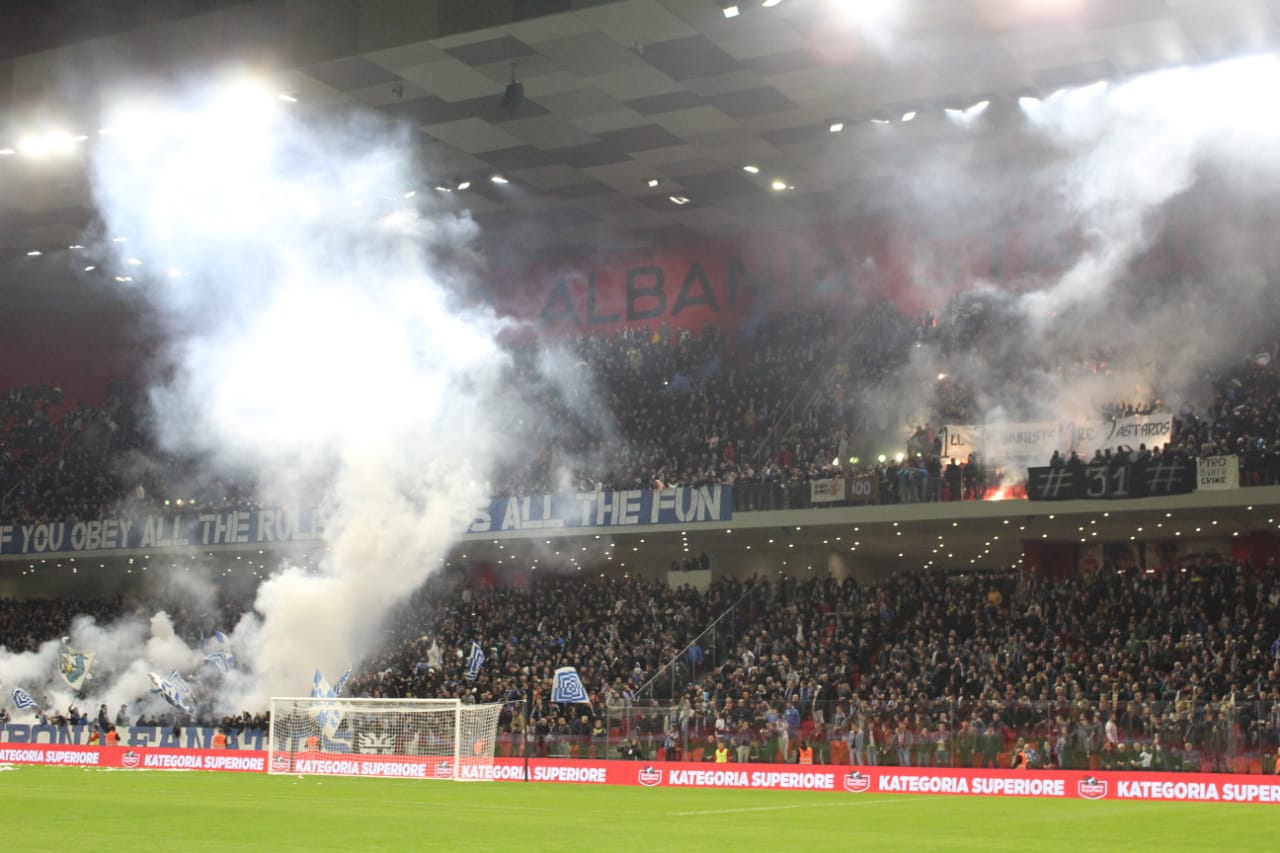Momente prekëse pak çaste para nisjes së derbit Partizani-Tirana në Air Albania stadium. Dedikime për viktimat e tërmetit të 26 nëntorit dhe nderim për njerëzit e përkushtuar që punuan në ndihmë të të prekurve.