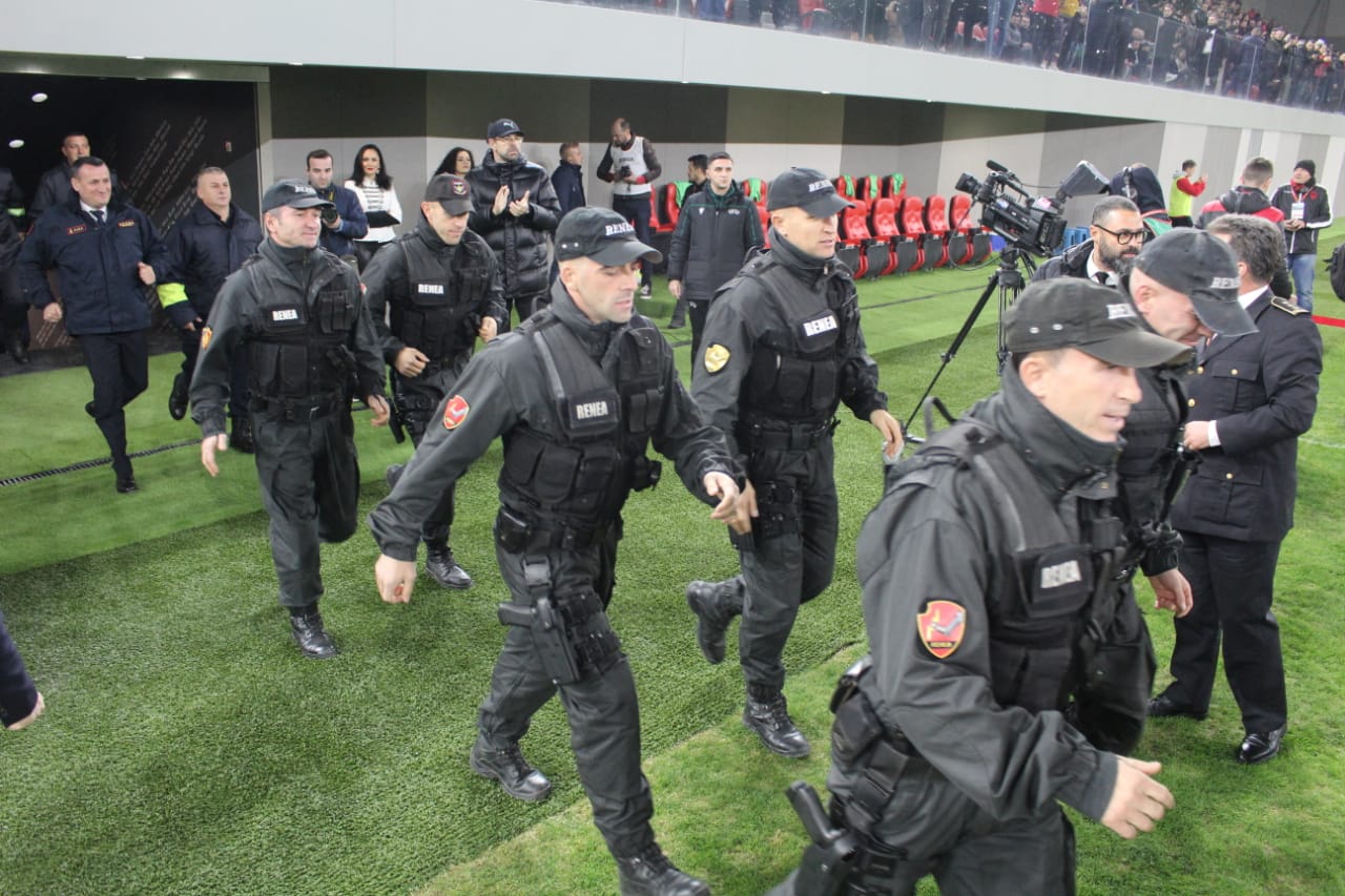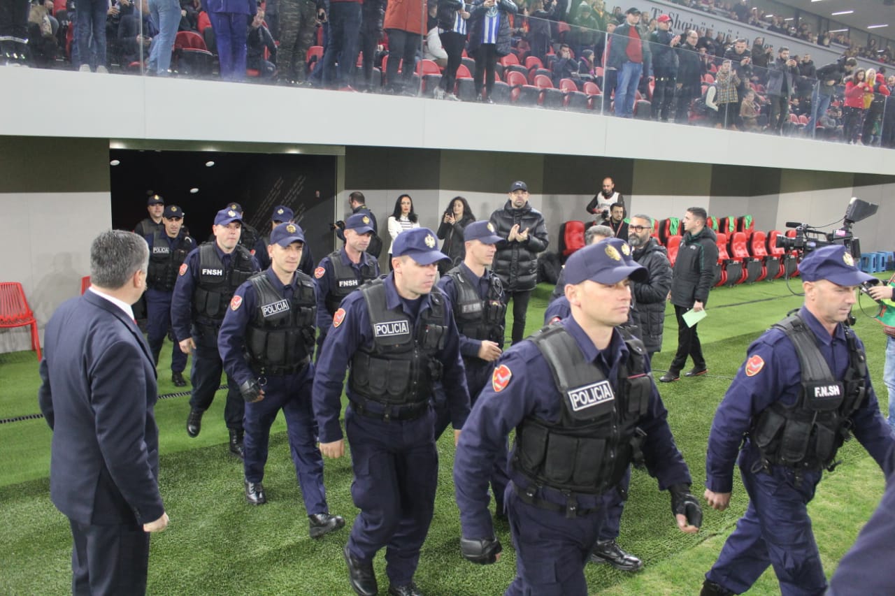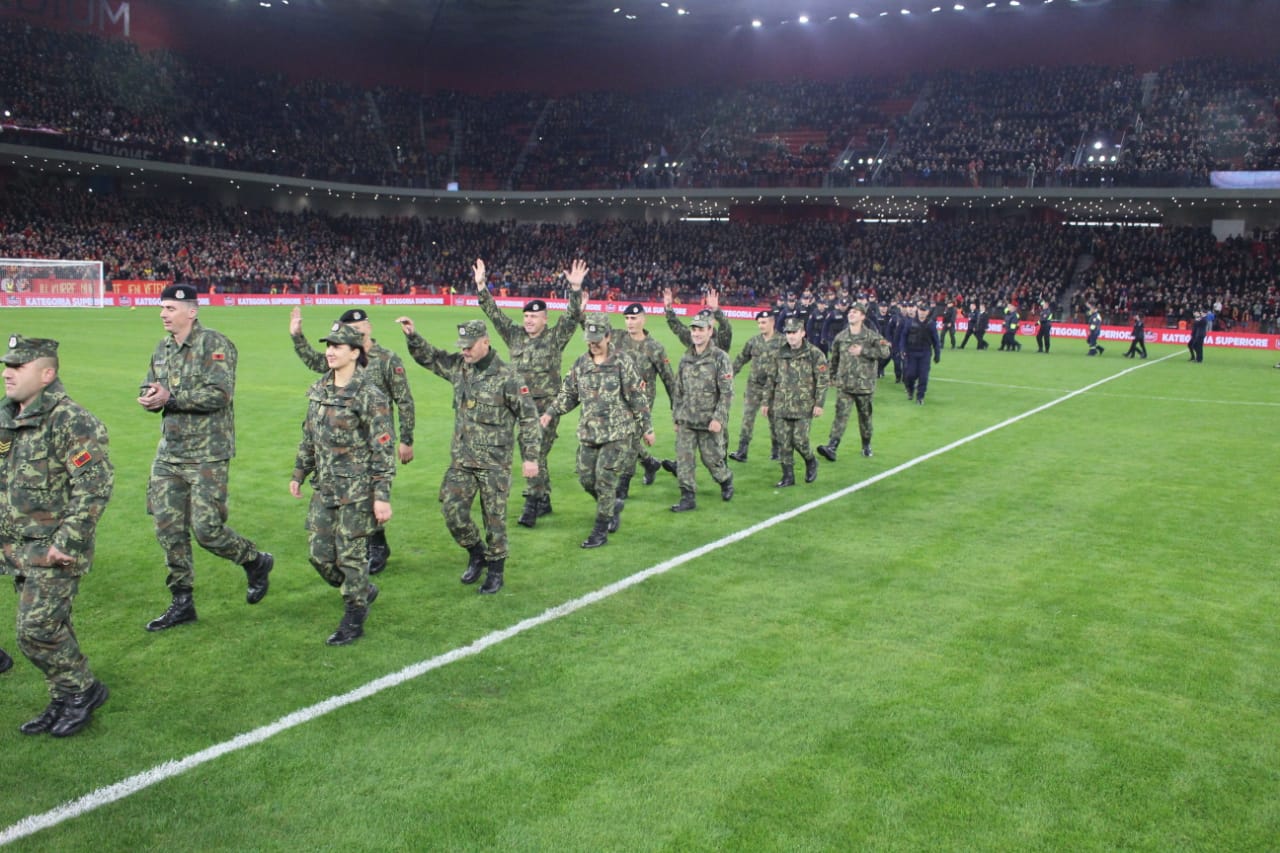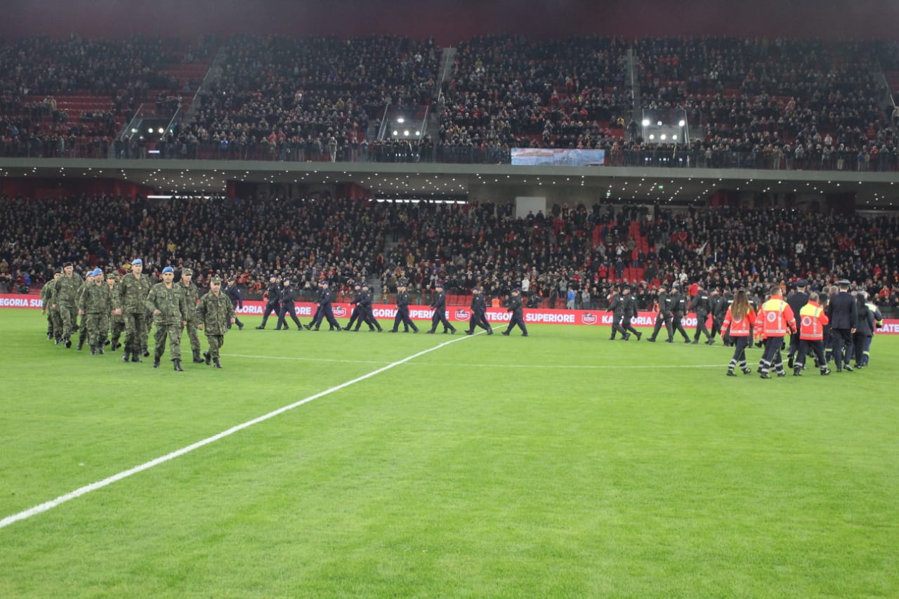 Në fushën e gjelbër kanë hyrë me radhë forcat e ushtrisë, policisë, zjarrfikësve dhe urgjencës civile që morën pjesë në operacionet e shpëtimit pas tërmetit, teksa tifozët e dy grupimeve i përshëndetën me duartrokitje të gjata.