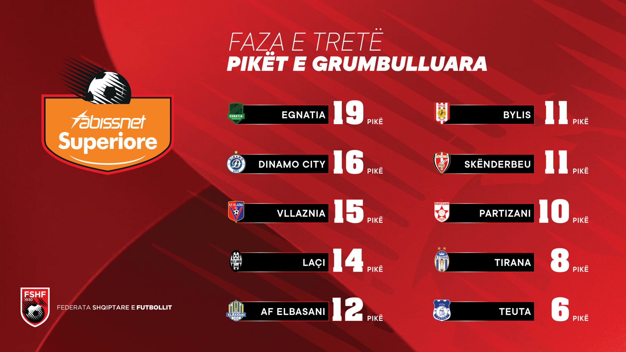 Pas të kuqve renditet Tirana, që gjatë kësaj faze ka marrë vetëm 8 pikë, ndërsa Teuta është skuadra e fundit, me vetëm 6 pikë të grumbulluara.