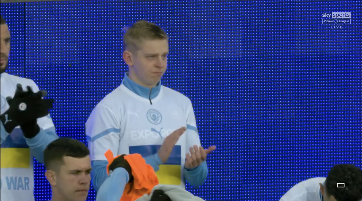 Një video shumë prekëse po bën xhiron e botës në rrjetet sociale. Futbollisti i Manchester City-it, Zichenko ka shpërthyer në lot para fillimit të ndeshjes, ndërkohë që shokët e tij kishin veshur në fanellë me mbishkrimin “jo luftë”, duke e shoqëruar me foton e flamurit të Ukrainës.