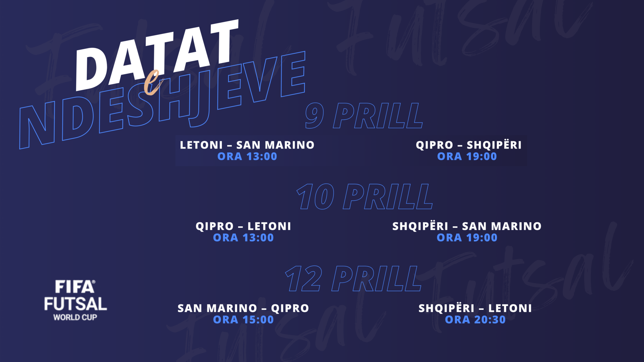 Kombëtarja shqiptare e futsallit do të nisë të enjten rrugëtimin në raundin paraeliminator të Grupit E të FIFA Futsal World Cup 2028, ku do të përballet me Qipron, Letoninë dhe San Marinon. Të gjitha ndeshjet e këtij grupi do të zhvillohen në Parkun Olimpik të Tiranës, nën organizimin e Federatës Shqiptare të Futbollit.