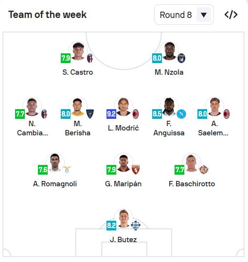 Pikërisht për këtë arsye, ai është vlerësuar me notën 8 nga “SofaScore”, që ka marrë për bazë statistikat që prodhoi gjatë ndeshjes një fjalë. Një notë që ka mjaftuar për të përzgjedhur Berishën në formacionin më të mirë të javës së 8 në Serinë A. Aty ai rreshtohet në një mesfushë me emra të njohur si Modriç, Anguisa e Salemakers, falë një paraqitje ku Berisha tregoi se nuk ishte rastësi që klubi i kishte besuar fanellën me numrin 10.