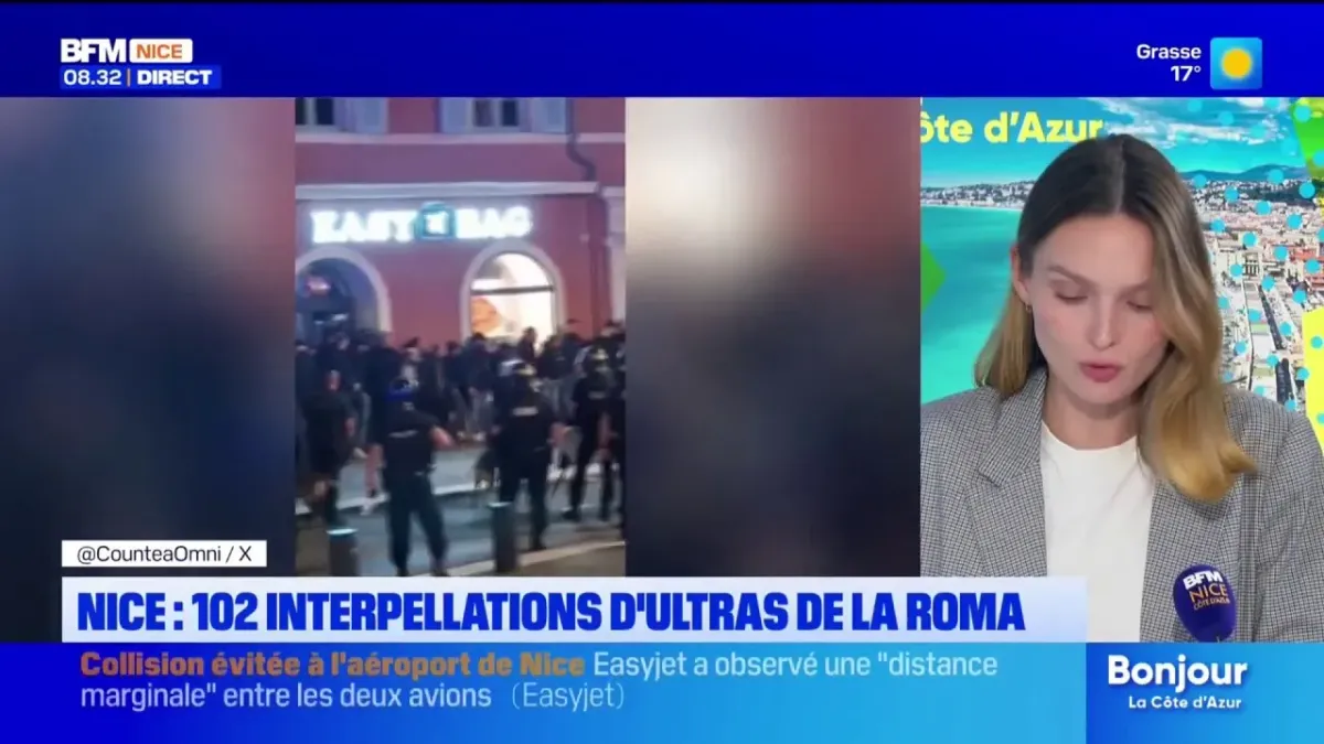Sipas të përditshmes franceze L’Équipe, 102 persona të armatosur u arrestuan dhe u dërguan në komisariate, pas përleshjeve të ndodhura në sheshin kryesor Place Masséna. Dëshmitarë të cituar nga Nice-Matin raportuan se gjithçka nisi kur disa tifozë, të ulur në një lokal, nisën të godisnin policinë me gota, duke provokuar më pas ndjekje dhe përplasje në rrugët e qytetit të vjetër.