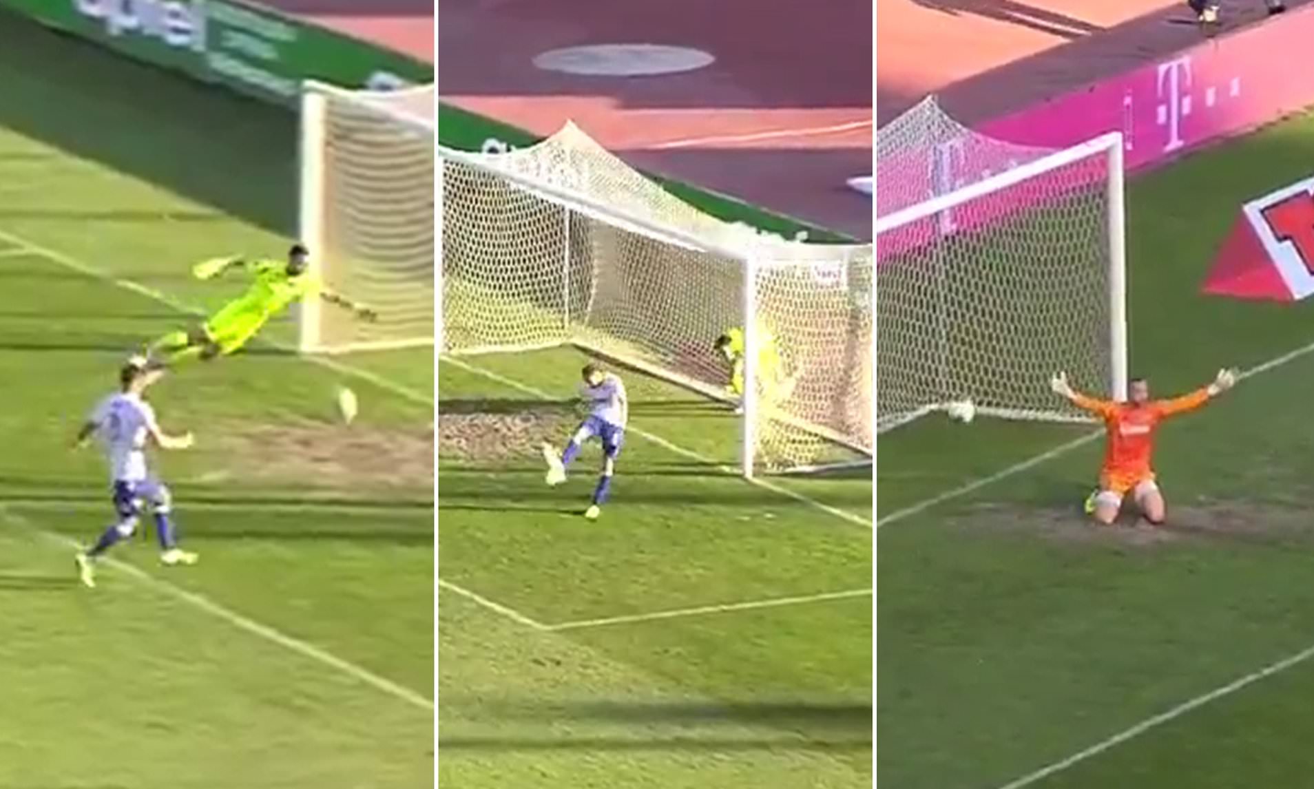 Portieri i ekipit vendas shkoi për të përqafuar lojtarët e stolit dhe nisën të festonin një gol që nuk u shënua, pasi topi përfundoi në shtyllë dhe nuk e kaloi për asnjë moment vijën fatale.