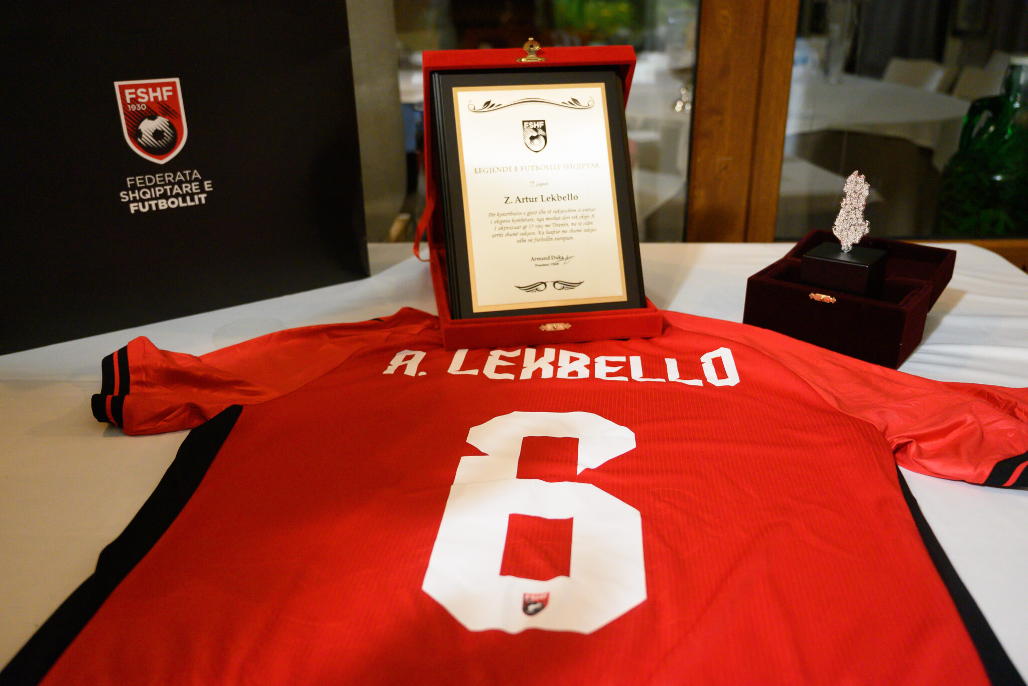 Në ceremoninë e zhvilluar me këtë rast dhe në një atmosferë shumë miqësore, ku morën pjesë edhe familjarë e miq të ish-futbollistit, Presidenti Duka i shprehu mirënjohjen e tij Artur Lekbellos për karrierën e jashtëzakonshme dhe gjurmën që ka lënë në futbollin shqiptar.