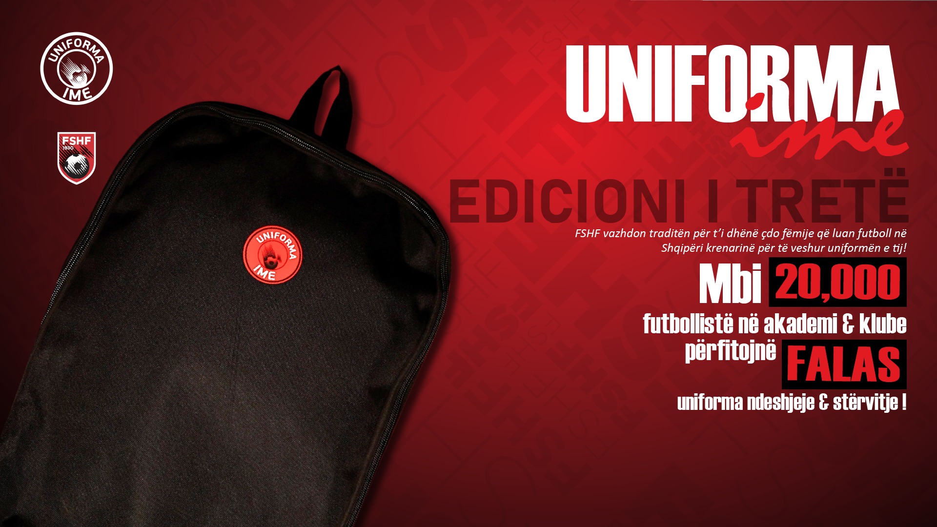 Federata Shqiptare e Futbollit ka nisur zbatimin e projektit “Uniforma Ime” për sezonin e ri futbollistik 2025/2026. Ky projekt ka për qëllim të mbështesë klubet dhe akademitë që marrin pjesë në kampionatet zyrtare për grupmoshat U7–U19, duke ofruar uniforma falas për të gjithë fëmijët që luajnë futboll.