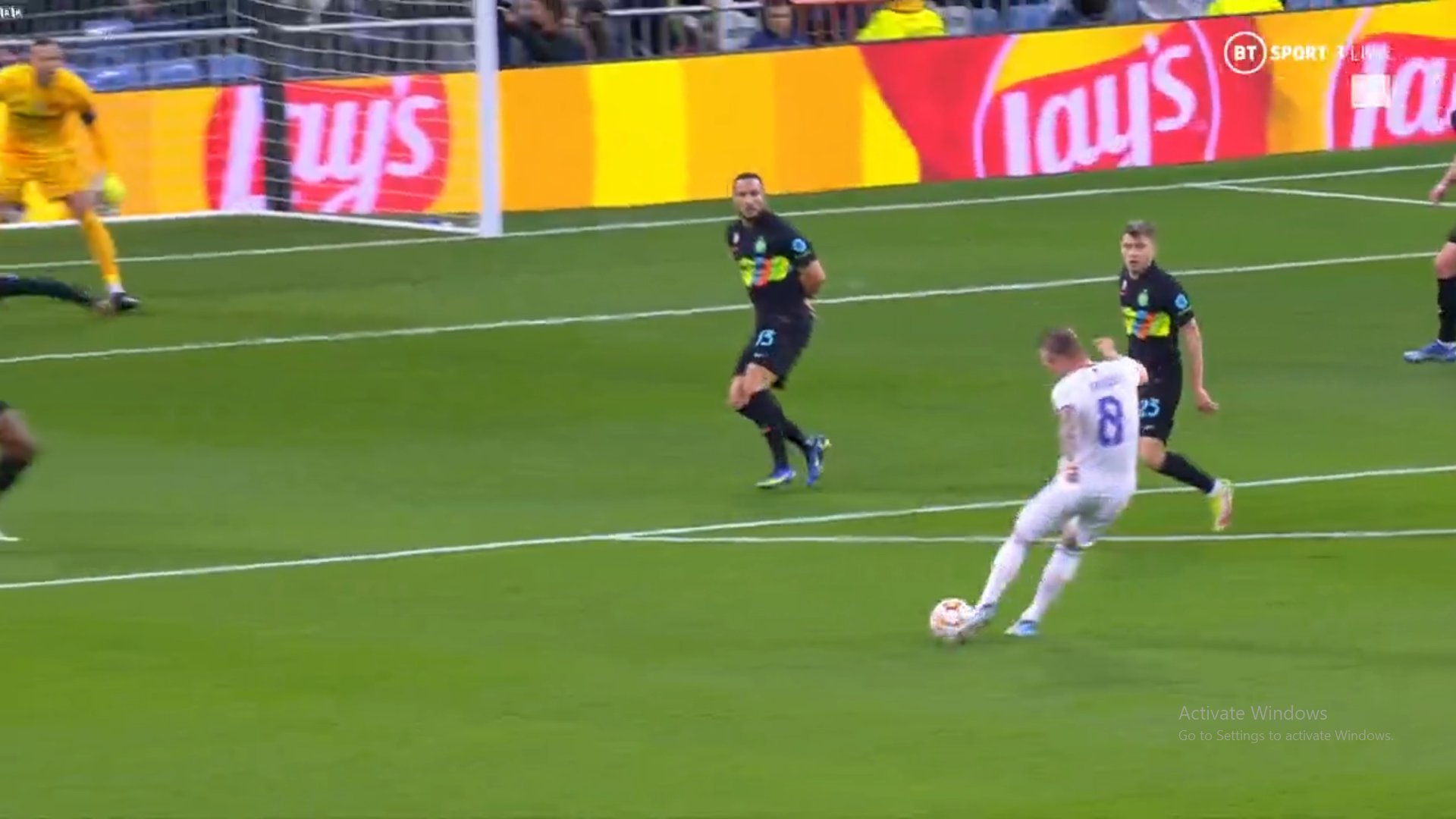 Real Madrid e ka nisur në mënyrën më të mirë duelin ndaj Interit, duke zhbllokuar menjëherë shifrat. Në minutën e 17-të, pas një aksioni të rrjedhshëm, Toni Kroos kontrolloi topin me të djathtën dhe më pas lëshoi një goditje të bukur me të majtën , që nuk i dha asnjë mundësi reagimi portieri Handanovic.
