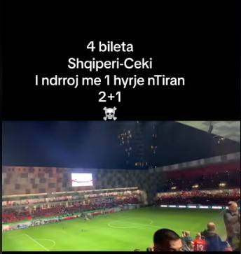 Biletat për sfidën e ekipit kuqezi me Çekinë, mbaruan në kohë rekord. Në situatën e krijuar ka lulëzuar tregu i zi. Pagesa “cash” është e pranueshme. Një përdorues pretendon se disponon të paktën 300 bileta mbrapa porte, të cilat i shet me “çmim të arsyeshëm”: vetëm 35 euro, nga 3 mijë lekë që ishte kosto origjinale.