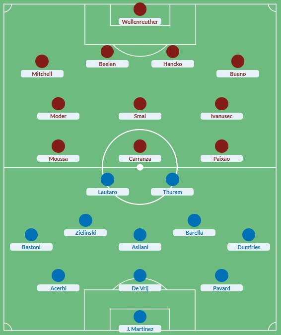 Në stërvitjen e fundit Inzaghi ka provuar në stërvitje treshen e mesfushës të formuar nga Asllani, Barela dhe Zielinski. Në këtë mënyrë shqiptari do të ndihmohet prej dy shokëve të repartit, të cilët siç kanë treguar edhe në ndeshjet e kaluara, shpesh herë ndërrojnë vendet në fushë.