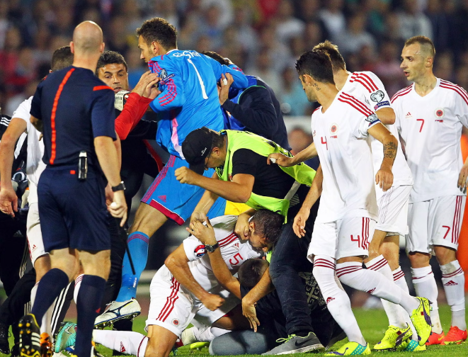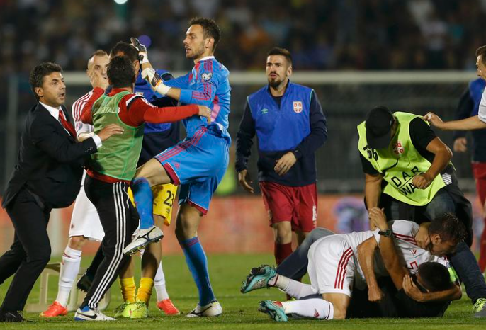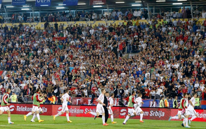 Kjo për faktin se luhet ndaj Serbisë, e cila jo vetëm mbetet pretende për vendin e dytë në grup, sikurse edhe Shqipëria e cila synon këtë rënditje, por edhe për arësyen se ndeshja në Beograd me 14 tetor 2014 u kthye në arenë boksi prej lojtarëve serbë e ku huliganët e Serbisë shpërthyen me mjete goditëse ndaj lojtarëve të Shqipërisë.