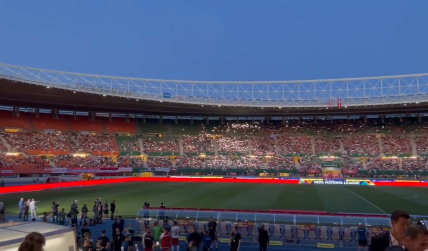 Ndërkohë që fundmi ka qenë faqja zyrtare e Federatës së Futbollit të Austrisë, që nëpërmjet një postimi në faqen zyrtare në “Tëitter”, ka publikuar video nga situata aktuale në stadium, ku shikohen dritat e ndezura, ndërkohë që të dyja kombëtaret kanë rënë dakord që ndeshja të startojë në orën 22:15.