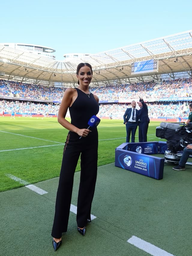 Simona Leskovska, një modele 30-vjeçare dhe finaliste e konkursit “Miss Sllovakia”, ka rrëmbyer vëmendjen e publikut, këtë herë jo nga pasarelat, por si gazetare në Kampionatin Europian për moshat nën 21 vjeç që po zhvillohet në vendin e saj.