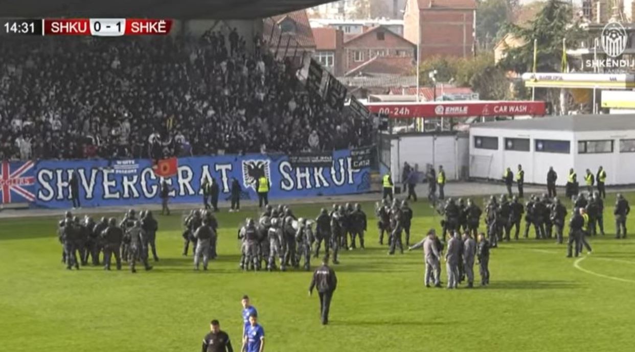 Ndeshja është ndërprerë, në fushë kanë zbarkuar edhe forcat speciale, teksa delegatët e ndeshjes theksojnë se e vetmja mënyrë për të rinisur ndeshja është të boshatiset stadiumi.