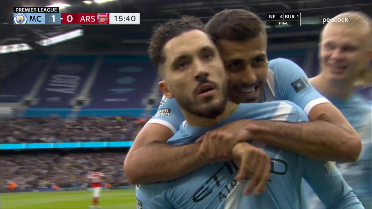 Manchester City ka arritur që të zhbllokojë super duelin ndaj Arsenalit që po luhet aktualisht në Etihad. Në minutën e 16-t, Cherki bën gjithçka mirë brenda zonës me lëvizje të shpejta dhe më pas e dërgon topin në kuadrat.