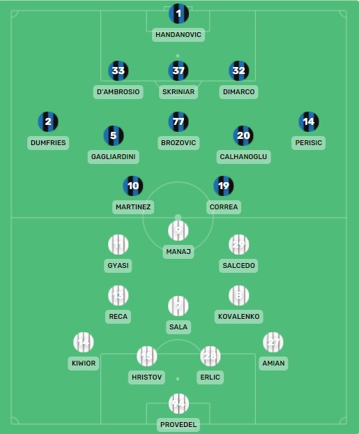 Interi do të luajë pas pak minutash sfidën e radhës në kampionat ndaj Spezias. Zikaltrit do të kenë disa mungesa në këtë duel, kryesisht në mbrojtje, teksa De vrij, Darmian dhe Bastoni janë të padisponueshëm. Lautaro Martinez në këtë ndeshje do të mbështetet nga Correa në sulm.