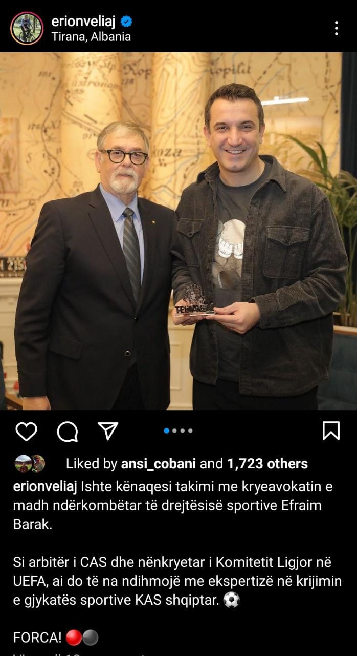 Disa orë vonë Veliaj nxitoi të ndryshonte postimin e tij në rrjetet sociale, duke nxjerrë në shesh gënjeshtrën që kishte bërë dhe duke shkruar se “Efraim Barak, si arbitër i CAS dhe nënkryetar i Komitetit Ligjor në UEFA, ai do të na ndihmojë me ekspertizë në krijimin e gjykatës sportive KAS shqiptar”. Një tjetër blof i kryebashkiakut të Tiranës mes shumë autogolave që ka bërë ditët e fundit në betejën e tij me komunitetin e futbollit.