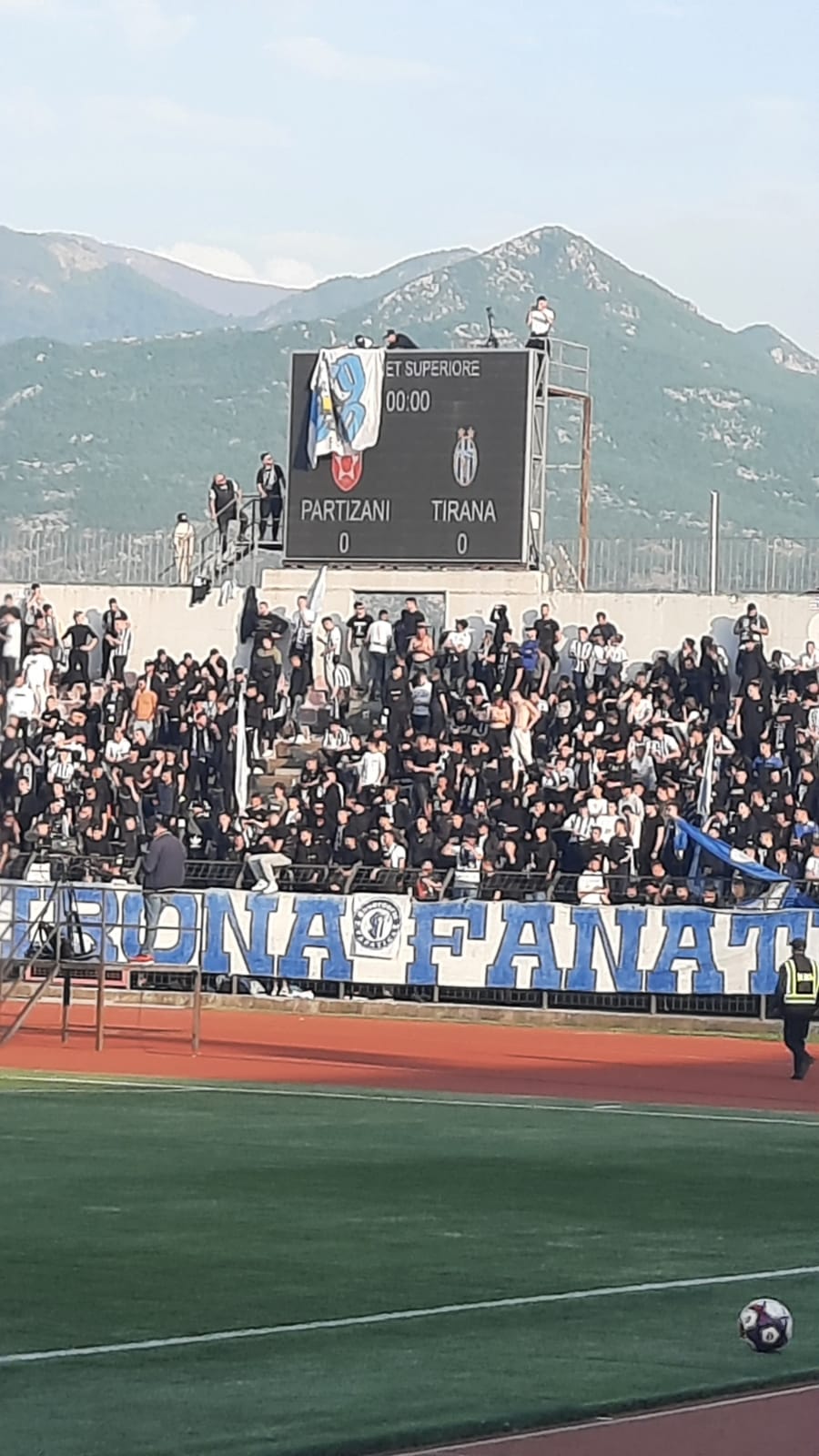 Fansat bardheblu janë pozicionuar poshtë tabelës elektronike të stadiumit, ku shfaqen skuadrat që ndeshen, bashkë me logot përkatëse, por pikërisht “e kuqja” e Partizanit ka “tërbuar” tifozët e Tiranës.